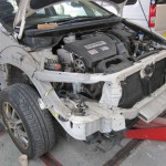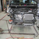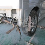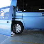 タント交差点の事故修理 右側から衝撃が強くて左側に大きく歪みがあります したがって左のドアーを開けた時にフロントフェンダーを
