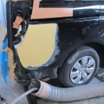 駐車場から出るときにハンドルを早く切りすぎてドアーとロックピラー部分 擦ってしまった様です ドアーを修理右のリヤーフェンダーを修理