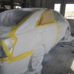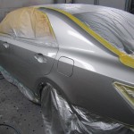 浜松市内からご来店のクラウンハイブリッドの板金修理左フロントドアーリヤーフェンダーキズヘコミ板金塗装修理リヤードアー取替え