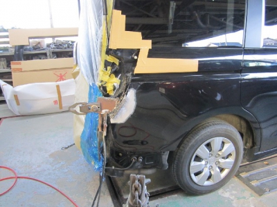 問題は右のリヤーフェンダーです保険会社は取替えの作業の見積もりを出して