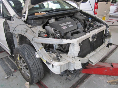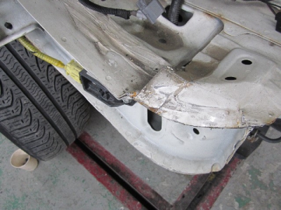 右フェンダーエプロン切開して修理
